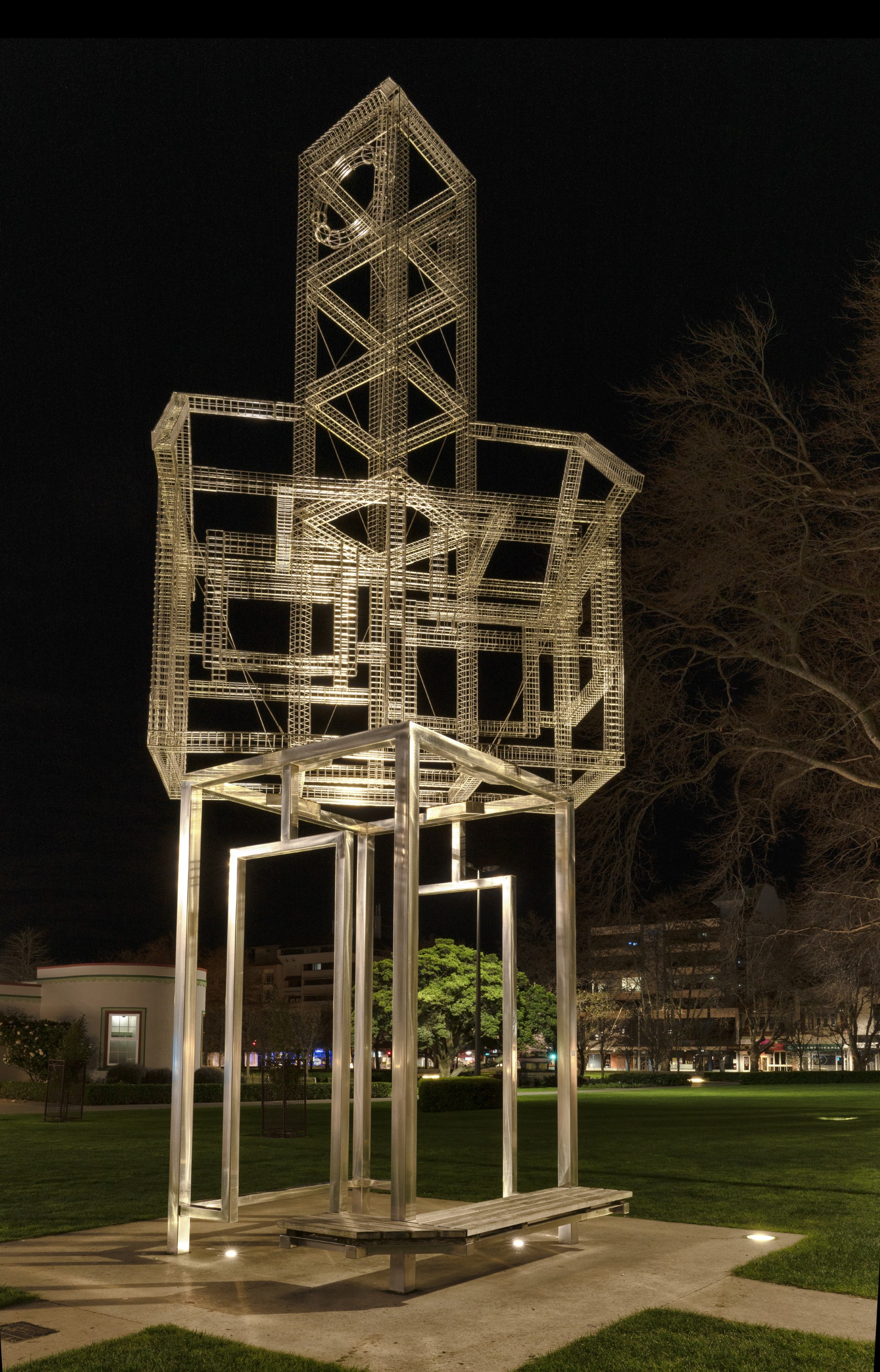 The 8th work in the collection, Ghost Tower, standing at 9.4 metres was installed on 13th April 2014 on the East side of The Square, in proximity to the Hopwood clock tower and close to the i-site Information Centre