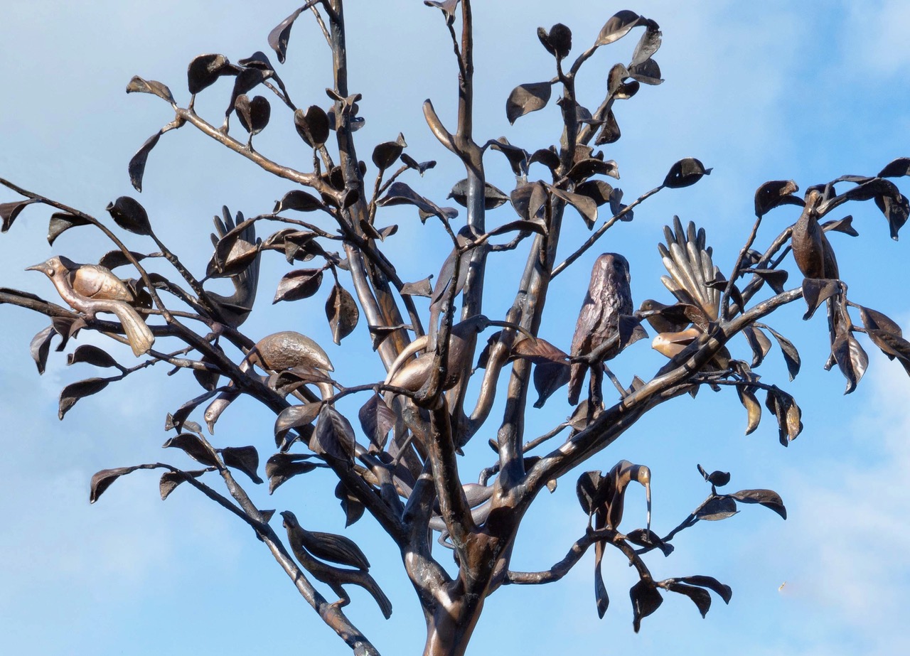 Dibble first developed the sculpture in 2008, as part of a series of artworks based on creation and immortality myths. He made several changes over the years, including the addition of a ruru (morepork) to represent “Nightshade”, a bird whose recovery was followed on the Wildbase website.