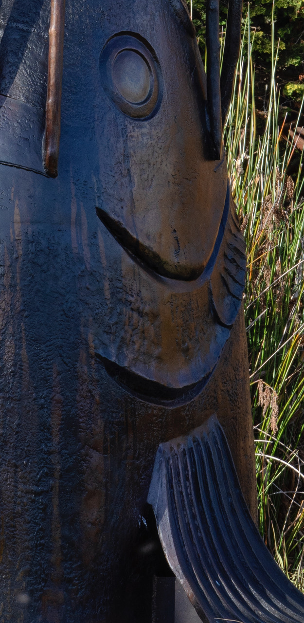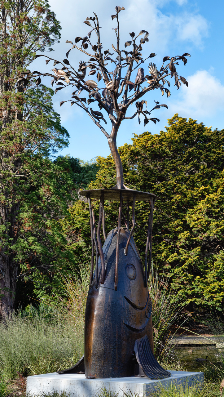 Dibble’s large sculpture references one of New Zealand’s great creation stories: the legend of Māui fishing up the North Island. Standing in his ‘South Island waka’, Māui landed a gargantuan fish, which today we know as the North Island.